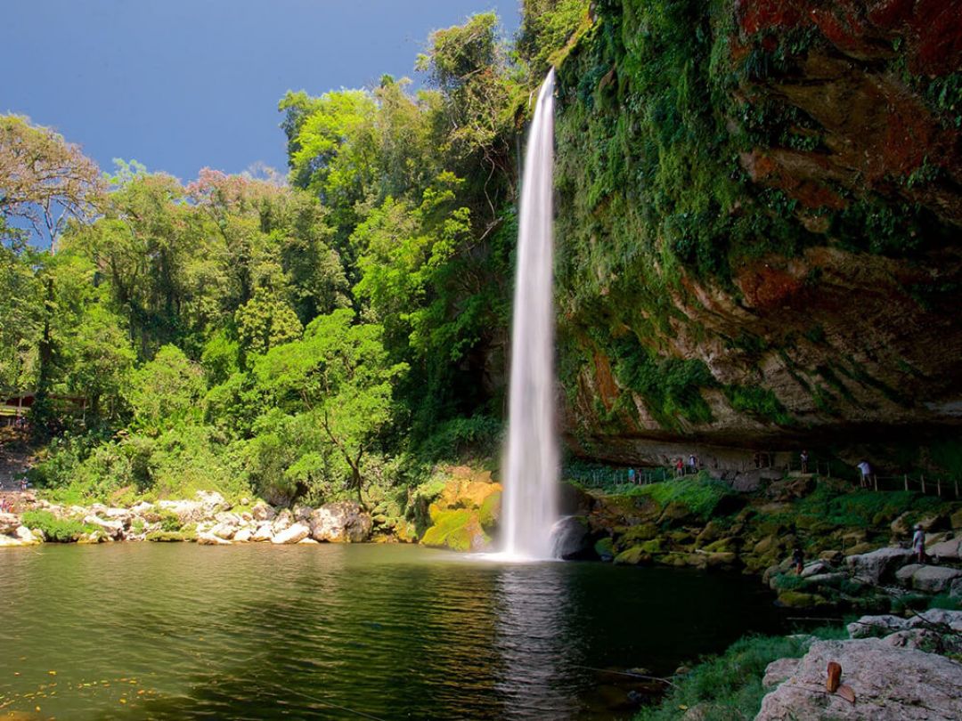 After that, we will go to Misol Ha waterfalls to freshen up. The peculiarity of the Misol - Ha waterfalls is that in the top center of the waterfall there is an entrance to a cave in which there is another smaller waterfall. In the evening we´ll return to the hotel in Palenque.